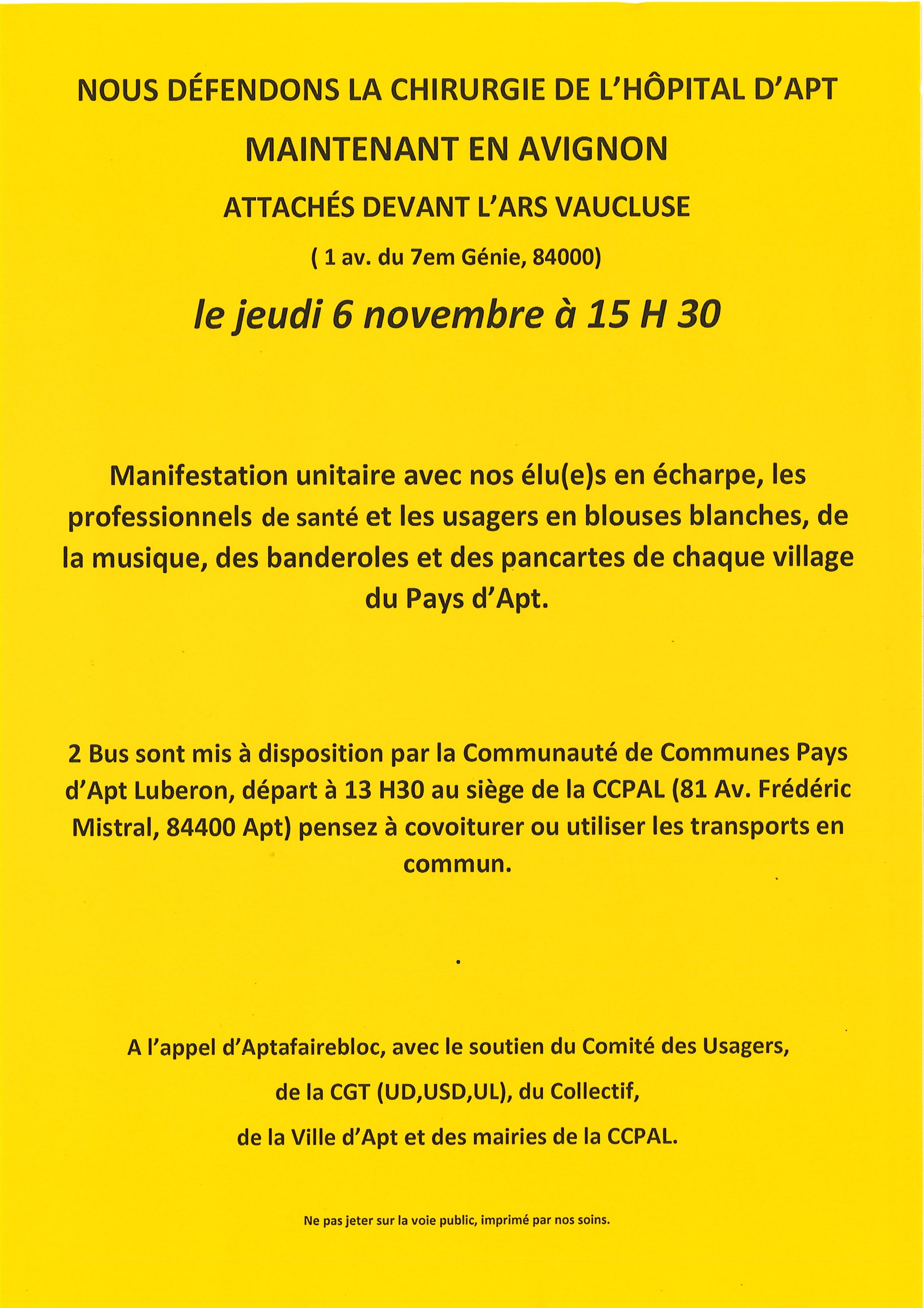 Vous êtes ici : Accueil > Manifestation pour l'hopital d'APT