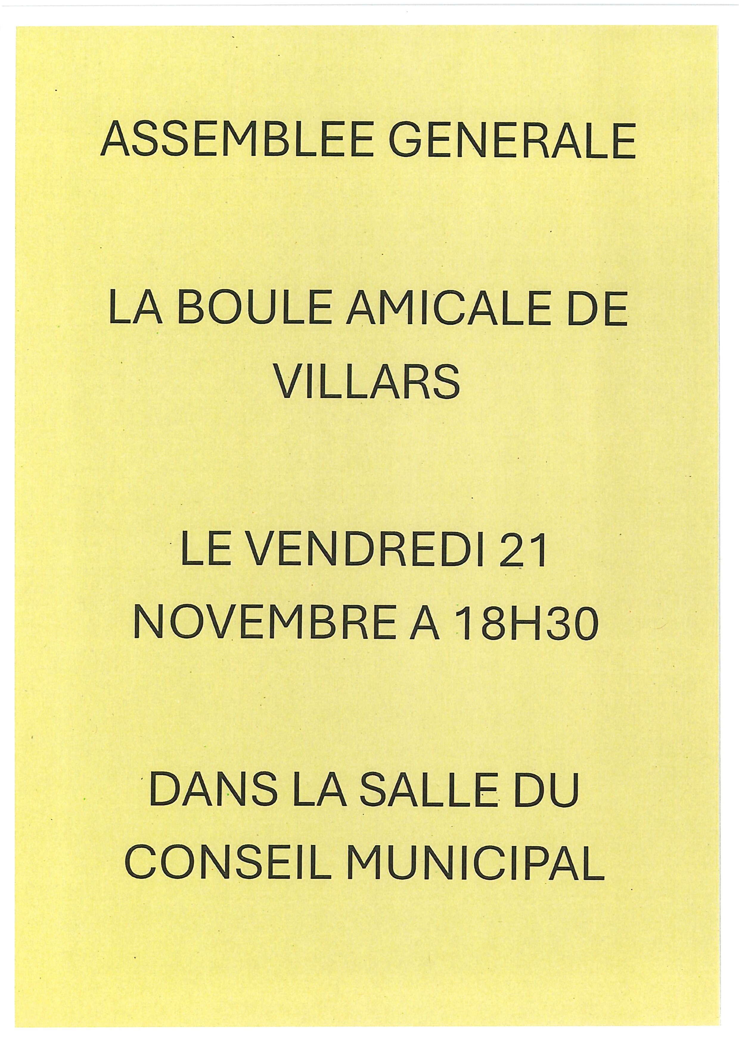 Vous êtes ici : Accueil > Assemblée générale des Boules de Villars